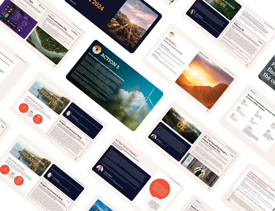 We bring together the advertising supply chain, including advertisers, agencies, media owners, ad tech, and trade bodies around a voluntary, shared Action Plan, which provides a foundation for how the industry can cut operational emissions and embed sustainability into business strategy and creative work.